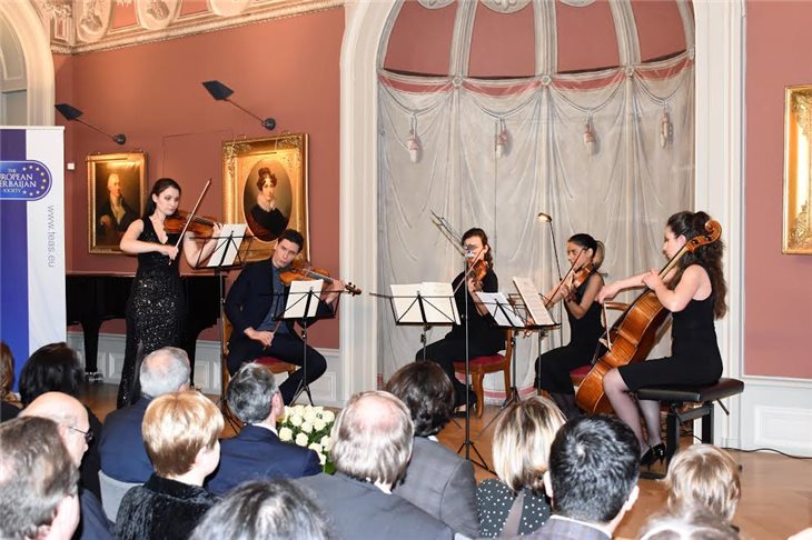 Konsert "Rhein-Quartett” kamera ansamblının qərb və azərbaycanlı bəstəkarlarının əsərlərini ifa etməklə davam etmişdir. Özü Birinci Dünya müharibəsinin qurbanı olmuş bəstəkar Enrike Qranadosun "Orientale” (ispan üslubunda kompozisiya), Əfrasiyab Bədəlbəylinin duyğusal "Azad Bir Quşdum”, Xəyyam Mirzəzadənin həzin "Bərzəni” adlı əsərləri çox ecazkar şəkildə ifa edib.