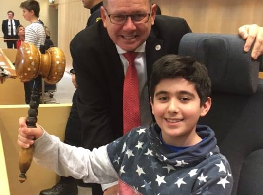 6-cı sinif şagirdi olan Sahib Kazımlı Stokholm məktəbində əla qiymətlərlə oxuyur, şəkli məktəbin əsas korpusunun foyesində vurulub. Martın 26-da S.Kazımlı və digər əlaçı şagirdlər İsveç parlamentində olaraq, deputatlarla, parlamentin sədri ilə görüşüblər. Parlament sədri Urban Ahlin öz kreslosunu və ədalətli polemika rəmzi olan 140 illik çəkici Sahibə etibar edib. Şagirdlər parlamentin plenar iclasında iştirak edərək, deputatların ölkənin problemləri ilə bağlı müzakirəsinə qulaq asıblar. İsveçə köç edən azərbaycanlı jurnalistin oğlunun bu cür qürurverici fotosu ictimaiyyətdə xüsusi rəğbətlə qarşılanıb. Məsələ ilə bağlı internet üzərindən keçmiş əməkdaşımız Rahib Kazımlının təəssüratlarını öyrənməyə çalışdıq. R.Kazımlının sözlərinə görə, oğlunun parlamentə-riksdaqa gedişi ilk dəfə imiş: