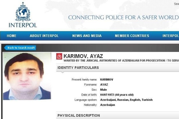 Keçmiş milli təhlükəsizlik naziri Eldar Mahmudovun oğlu Anar Mahmudovun şəriki dövlətlərarası axtarışa verilib. İnterpolun saytında yerləşdirilən məlumatda qeyd olunur ki, 1972-ci il təvəllüdlü Ayaz Kərimov vəzifə səlahiyyətlərini aşma və özgəsinin əmlakını ələ keçirməkdə təqsirləndirilir. A.Kərimov Azərbaycanı tərk etdiyi üçün onun barəsində beynəlxalq axtarış elan edilib və saxlanılması üçün İnterpola müraciət olunub. APA-nın məlumatına görə, "Caspian Telekommunications” şirkətinin rəhbəri olan Ayaz Elxan oğlu Kərimovun əmlaklarına da həbs qoyulub. Onun əmlakı - Abşeron rayonundakı torpaq sahəsi 70 min manat, "Harley Devidson” markalı motosikleti 12.500 manat, "AKEY” MMC-nin adına rəsmiləşdirilmiş "Maserati Quatroporte” markalı avtomobil 155 min 733 manat 8 qəpik, "Jaguar XJ” markalı avtomobil 140 min 529 manat məbləğində qiymətləndirilib.