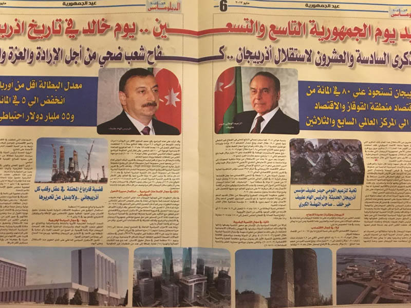 28 May Respublika Günü münasibəti ilə Azərbaycan Respublikasının Misir Ərəb Respublikasındakı Səfirliyi tərəfindən təşkil olunan silsilə tədbirlər çərçivəsində Misirdə siyasi və diplomatik çevrələrdə böyük nüfuza sahib olan "Diplomatiya" qəzetinin xüsusi buraxılışı nəşr olunub.