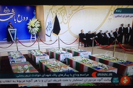 Hazırda Tehranda terror qurbanları ilə vida mərasimi keçirilir. Vida mərasimi parlament binasında təşkil olunub. Mərasimdə dövlət rəsmiləri və xarici diplomatlar iştirak edir.