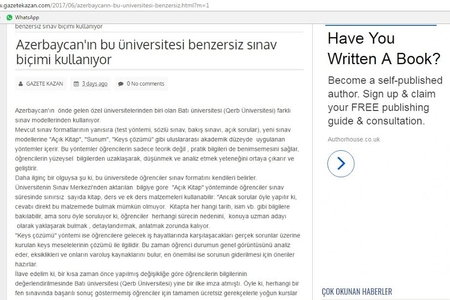 Türkiyənin www.gazetekazan.com saytı Qərb Universitetinin imtahan modelləri barədə yazıb. "Azərbaycanın bu universiteti unikal imtahan formalarından istifadə edir” sərövhələri yazıda Qərb Universitetinin tətbiq etdiyi imtahan modelləri şərh olunur, eyni zamanda universitet barədə oxuculara məlumatlar verilir.