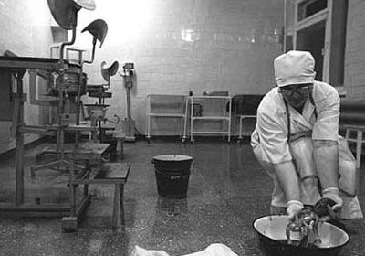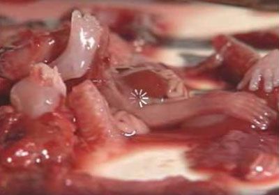 Təzyiq altında uşağın bədəni kiçik-kiçik hissələrə parçalanaraq qanlı kütlə şəklində xüsusi qaba sorulur...